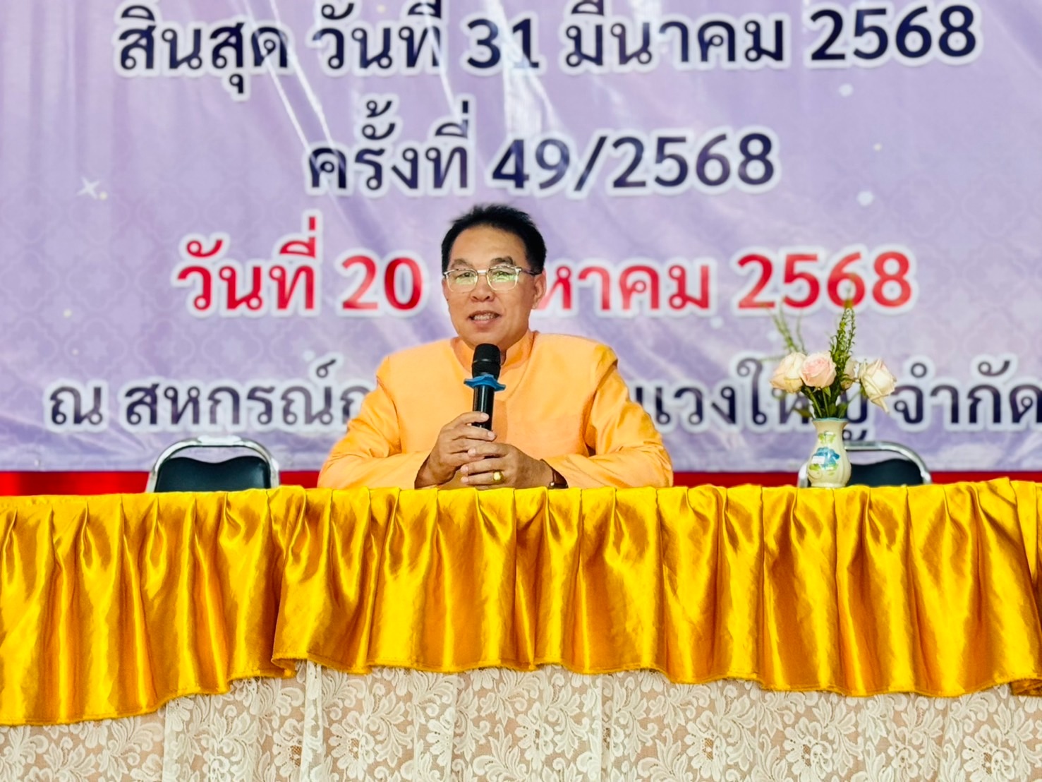 วันที่ 20 สิงหาคม 2568 นางสาวมะยุรี คำภาศรี ผู้อำนวยการศูนย์ถ่ายทอดเทคโนโลยีการสหกรณ์ที่ 8 มอบหมายให้นางสาวปรียานันท์ ปัญญายิ่ง เข้าร่วมประชุมใหญ่สามัญประจำปี 2567 สหกรณ์การเกษตรแวงใหญ่จำกัด เพื่อเป็นวิทยากรเรื่องการสหกรณ์และเป็นเกียรติในการประชุมใหญ่สามัญประจำปีครั้งนี้