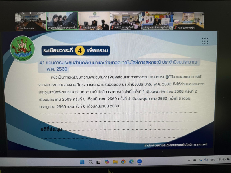 การประชุมจัดขึ้น ณ ห้องประชุม ฝ. 101 ชั้น 1 อาคารฝึกอบรมส่วนกลาง สำนักพัฒนาและถ่ายทอดเทคโนโลยีการสหกรณ์ เขตดุสิต กรุงเทพมหานคร และผ่านระบบประชุมออนไลน์ Zoom Meeting