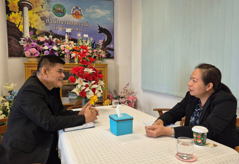 วันที่ 9 ธันวาคม 2568 นางสาวมะยุรี คำภาศรี ผู้อำนวยการศูนย์ถ่ายทอดเทคโนโลยีการสหกรณ์ที่ 8 จังหวัดขอนแก่น พร้อมด้วยนายธนกิจ เวินชุม นักทรัพยากรบุคคลชำนาญการ ได้ร่วมแสดงความยินดีกับนายเชษฐา ไพศาล เนื่องในโอกาสที่ได้รับการแต่งตั้งให้ดำรงตำแหน่งสหกรณ์จังหวัดมุกดาหาร พร้อมกันนี้ได้ร่วมหารือเกี่ยวกับการพัฒนาสหกรณ์ให้มีความเข้มแข็งผ่านแผนงานและโครงการฝึกอบรมประจำปีงบประมาณ พ.ศ. 2569 ของศูนย์ฯ ณ ห้องทำงานสหกรณ์จังหวัดมุกดาหาร สำนักงานสหกรณ์จังหวัดมุกดาหาร ศาลากลางจังหวัดมุกดาหาร (หลังใหม่) ชั้น 5 อำเภอเมืองมุกดาหาร จังหวัดมุกดาหาร