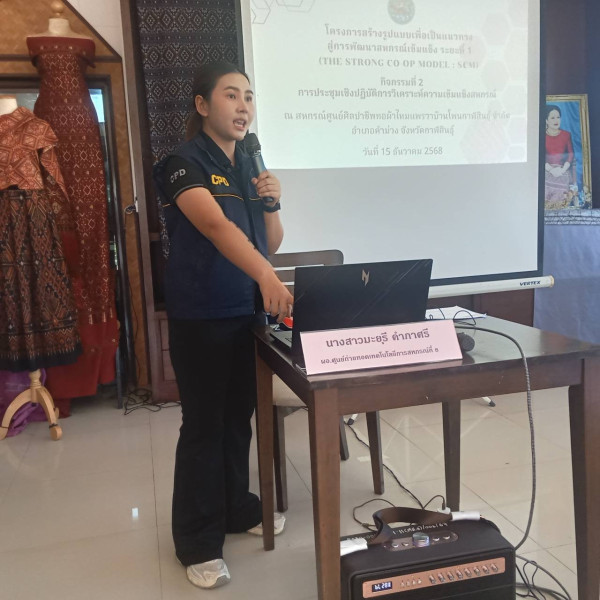 วันที่ 15 ธันวาคม 2568 นางสาวมะยุรี คำภาศรี ผู้อำนวยการศูนย์ถ่ายทอดเทคโนโลยีการสหกรณ์ที่ 8 จังหวัดขอนแก่น พร้อมด้วยทีมงาน จัดโครงการสร้างรูปแบบเพื่อเป็นแนวทางสู่การพัฒนาสหกรณ์เข้มแข็ง (The Strog Coop Model :SCM) ระยะที่ 1 กิจกรรมที่ 2 ประชุมเชิงปฏิบัติการวิเคราะห์ความเข้มแข็ง เพื่อให้ผู้เข้ารับการอบรมทราบและเข้าใจเกณฑ์ชี้วัดความเข้มแข็งของสหกรณ์และแนวทางการบริหารงานสหกรณ์เข้มแข็ง และให้สหกรณ์กำหนดแนวทาง แผนงานกิจกรรมเพื่อให้ผลักดันสหกรณ์สามารถพัฒนา หรือยกระดับความเข้มแข็งของสหกรณ์ได้อย่างเป็นรูปธรรม กลุ่มเป้าหมายได้แก่ คณะกรรมการดำเนินการ ฝ่ายจัดการ และสมาชิกชั้นนำ จำนวน 20 คน ณ สหกรณ์ศูนย์ศิลปาชีพทอผ้าไหมแพรวาบ้านโพนกาฬสินธุ์ จำกัด อำเภอคำม่วง จังหวัดกาฬสินธุ์