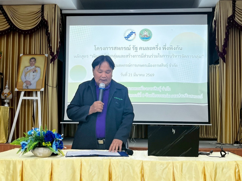 วันที่ 21 มีนาคม 2569 นางสาวมะยุรี คำภาศรี ผู้อำนวยการศูนย์ถ่ายทอดเทคโนโลยีการสหกรณ์ที่ 8 จังหวัดขอนแก่น พร้อมทีมงาน ดำเนินการจัดฝึกอบรมโครงการสหกรณ์ รัฐ คนละครึ่ง พึ่งพิงกัน หลักสูตร “พัฒนาผู้นำกลุ่มและสร้างการมีส่วนร่วมในการบริหารจัดการกลุ่ม” โดยมีวัตถุประสงค์เพื่อเพิ่มเป้าหมายในการพัฒนาบุคลากรสหกรณ์ทุกกลุ่ม และให้สหกรณ์เห็นความสำคัญในการใช้งบประมาณพัฒนาบุคลากรตรงตามความต้องการ (Training Need) รวมทั้งพัฒนาศักยภาพการบริหารจัดการกิจการสหกรณ์ให้มีความเข้มแข็งและเป็นสหกรณ์ตัวอย่าง (Coop Model) และเพื่อสนับสนุนการขับเคลื่อนโครงการพัฒนาสหกรณ์เข้มแข็ง และโครงการส่งเสริมและพัฒนาสถาบันเกษตรกร ซึ่งกลุ่มเป้าหมายการฝึกอบรมในครั้งนี้ ประกอบด้วย ประธานกลุ่ม เลขานุการกลุ่ม หรือสมาชิกชั้นนำ ของสหกรณ์การเกษตรเมืองกาฬสินธุ์ จำกัด จำนวน 50 คน ณ ห้องประชุมสหกรณ์การเกษตรเมืองกาฬสินธุ์ จำกัด อำเภอเมืองกาฬสินธุ์ จังหวัดกาฬสินธุ์